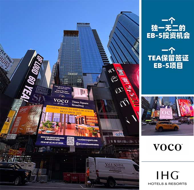 纽约时代广场,作为全球商业与娱乐的心脏,向来是资本竞逐的焦点。本期我们要推出的VOCO酒店项目,堪称这片黄金地段的“收官之作”。2021年的分区变更,让这片位于曼哈顿第七大道711号与西48街交汇处的地块,成为时代广场核心区最后一块可开发的珍贵资源。VOCO时代广场酒店总投资1.62亿美元,已于2026年2月中旬开业,稳定运营后估值将达2.78亿美元,为谨慎的EB-5投资者提供了参与美国顶级酒店市场的独特机会。